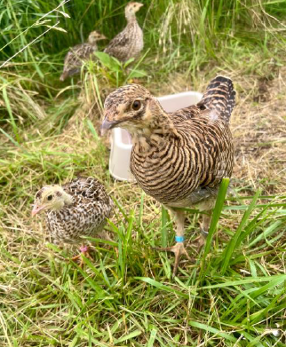 Attwater’s Prairie Chicken hen with chick being reared for release in Texas