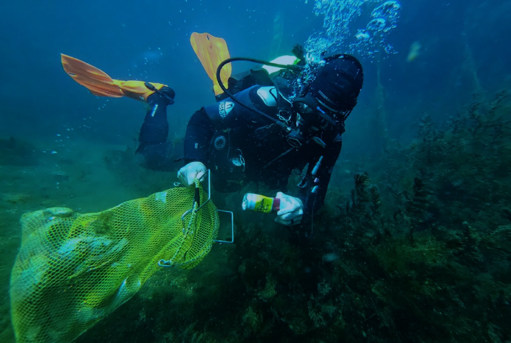Scuba volunteer engaged in San Marcos River clean up