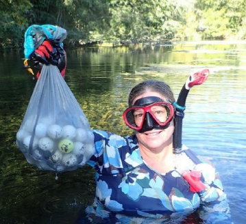 Volunteer removing degrading golf balls at clean-up events in Spring Lake & the San Marcos River